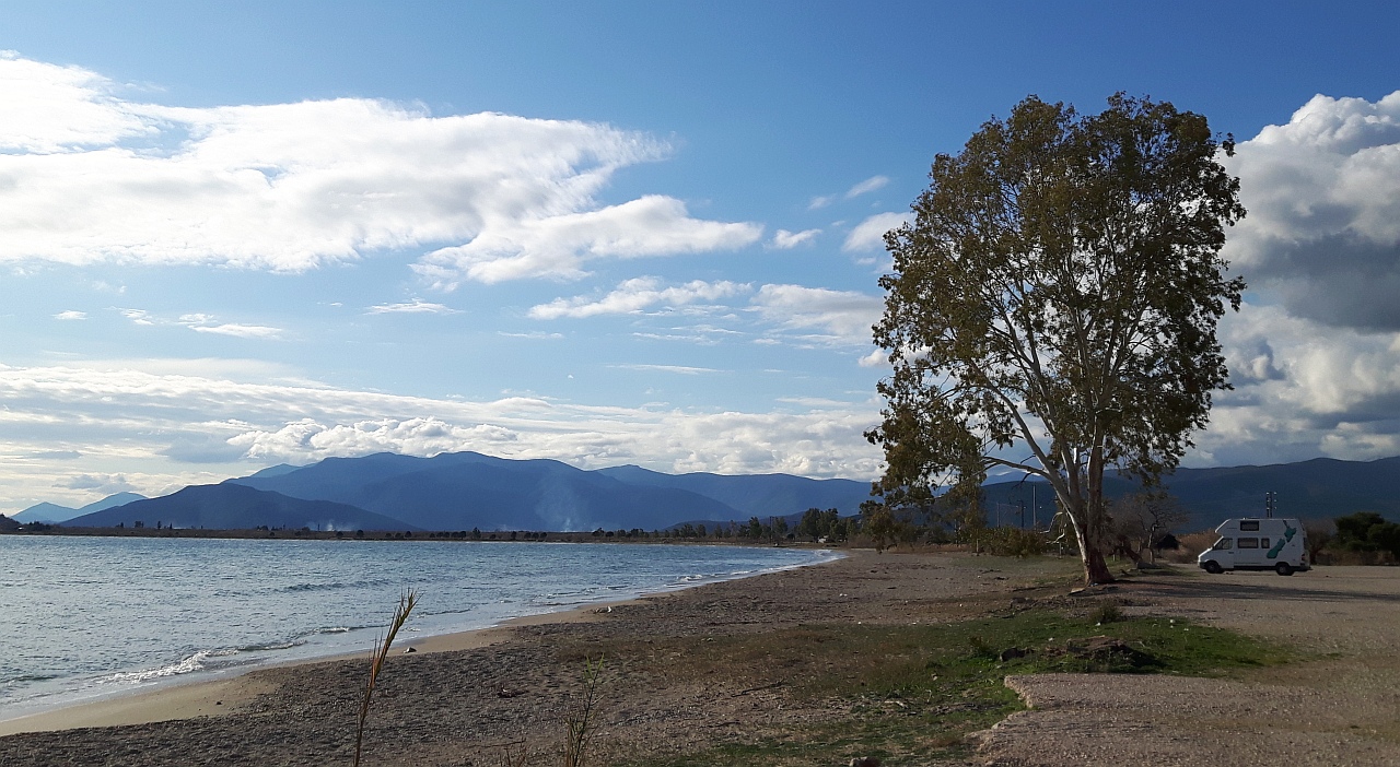 Da unser Gemüse und Obst zur Neige ging, entschlossen wir uns, weiter nach Nafplion zu fahren. Nafplion kannten wir ja schon und haben den schönen Wochenmarkt und die eindrucksvolle Altstadt in guter Erinnerung. Eine tolle Bucht mit weitem Sandstrand, Paralia Karathonas, ist nur einige Kilometer entfernt, und bietet angenehme Stellmöglichkeiten. Doch darüber mehr im nächsten Kapitel…