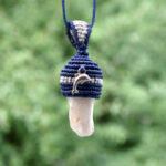 White beach stone from Greece, wrapped in blue with a small silver-colored dolphin pendant. Either with a matching necklace or without, please choose.