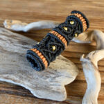 Longer dread bead in black with orange contrast and metallic beads