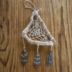 Dreamcatcher made of driftwood and feathers in macrame technique.