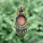 Beautiful Greek beach stone in orange, wrapped in greens with metal beads. Can you see the colors of a sunrise in this stone? Either with a matching necklace or without, please choose.