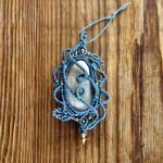 White Greek beach stone, decorated with gray clouds and waves and metal beads. Either with a matching necklace or without, please choose.
