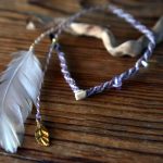 Purple dread extension with small gemstones, a real feather and gold coloured feather pendant.
