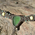 Short grey necklace with pearls, beads and a piece of sea glass as the center.