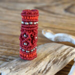 Beautiful gray bracelet with leaves, purple contrasts and different pearls