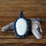Small white Greek beach stone wrapped in black with metal beads. Either with a matching necklace or without, please choose.