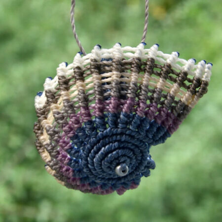 Interesting pendant in the shape of a shell in natural colors. Either with a matching necklace or without, please choose.