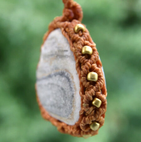 White beach stone wrapped in gray and white with a metal bead. Either with a matching necklace or without, please choose.