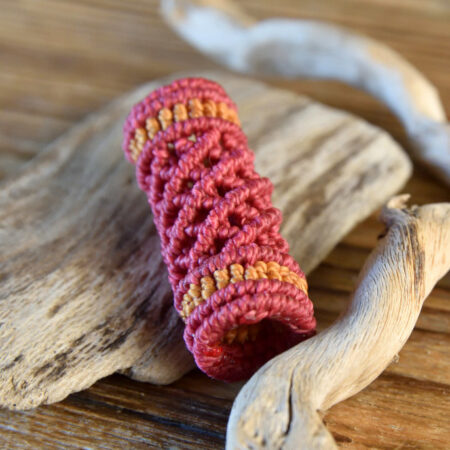Beautifully marbled large Greek beach stone wrapped in orange with metal beads. Either with a matching necklace or without, please choose.