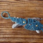 White beach stone from Greece, wrapped in blue with a small silver-colored dolphin pendant. Either with a matching necklace or without, please choose.