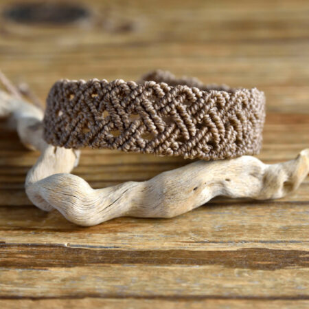 Medium-wide, light brown men’s bracelet with Celtic knots