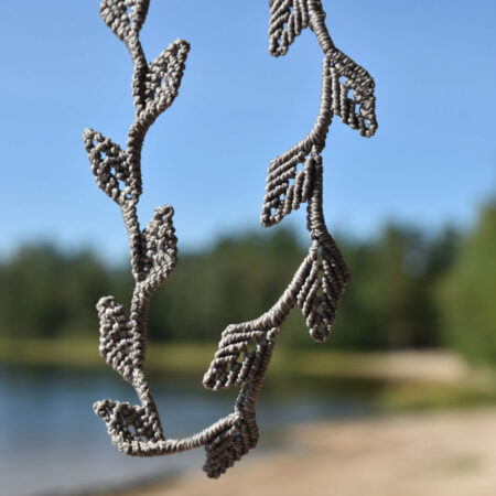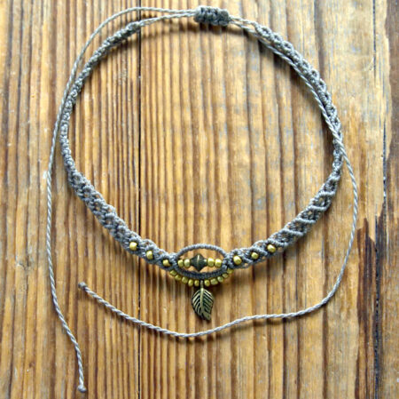 Short gray necklace with many leaves. Can also be used as a fancy headband.