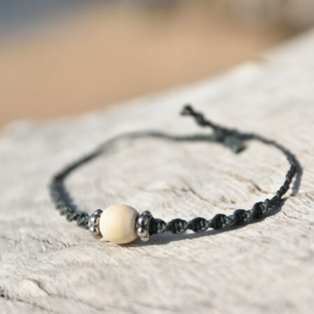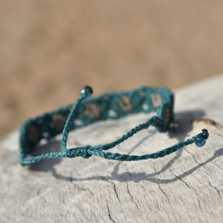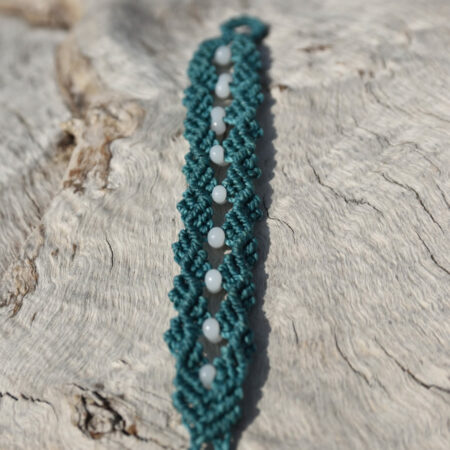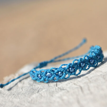 Narrow turquoise bracelet with pearls of the same color in the middle.